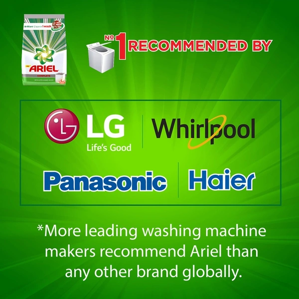 - Ariel is the no. 1 brand recommended by washing machine manufacturers like LG, Whirlpool, Panasonic, etc.