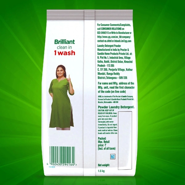 - Ariel is the no. 1 brand recommended by washing machine manufacturers like LG, Whirlpool, Panasonic, etc.