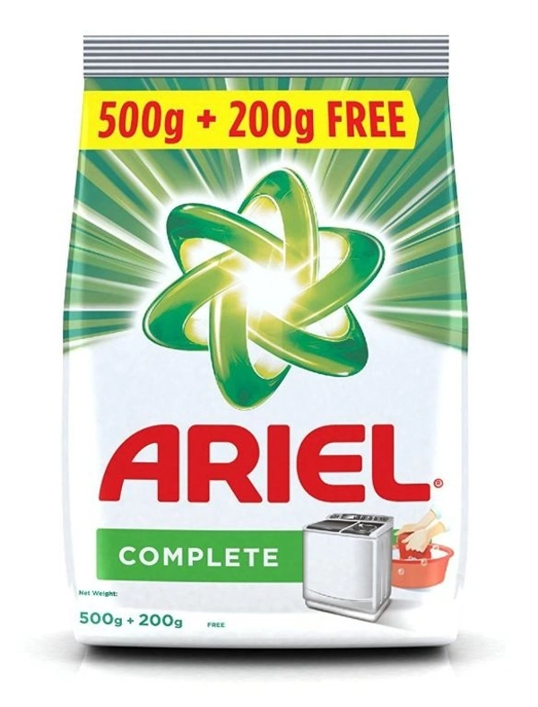 - Ariel Complete's cutting-edge technology provides impeccable cleaning for all your clothes, removes tough stains like juice, chocolate, tomato, and butter/ghee, and maintains the brightness of the clothes.